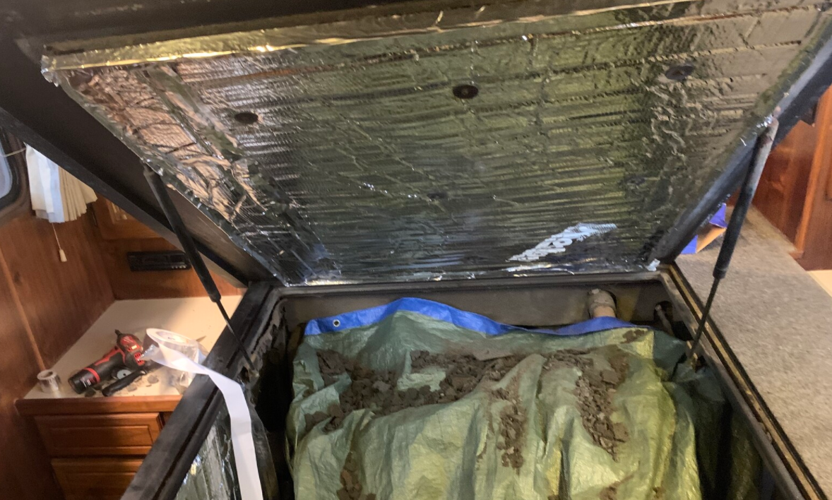 It has been discussed many times regarding how to insulate the engine bay under the bed. It is time to work on mine. <br><br>Some measurements<br>Under bed: 38*45*1.5<br>Side:<br> 48*21*1<br> 30*21*1<br> 28*21*1<br><br>@Pierce & Gaylie Stewart recommended using Hardie backer and fiber glass insulation material. I don't have the saw to cut them into perfect size. So I need something a little bit easier...